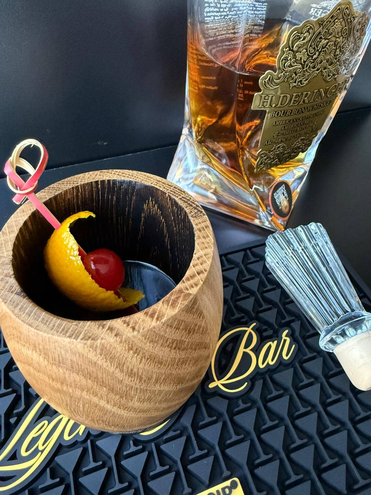 Elevate your home bar with this premium quality "Legendary Bar" mat from NOBLESIP. This stylish mat is perfect for both commercial and home bars, fitting most bar surfaces with its sleek design. Crafted with meticulous attention to detail, it adds a touch of sophistication to your drinking experience.
