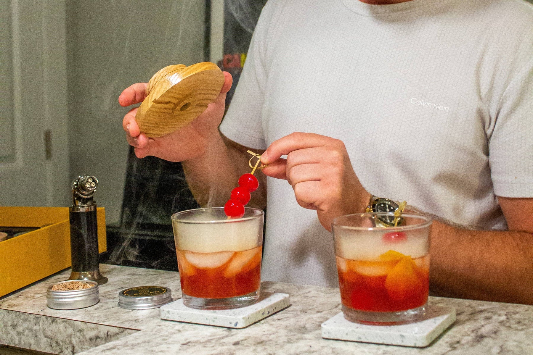Use the Selected Wood Chips to enhance your drink flavors. Full Smoker Kit for professionals and home bars.