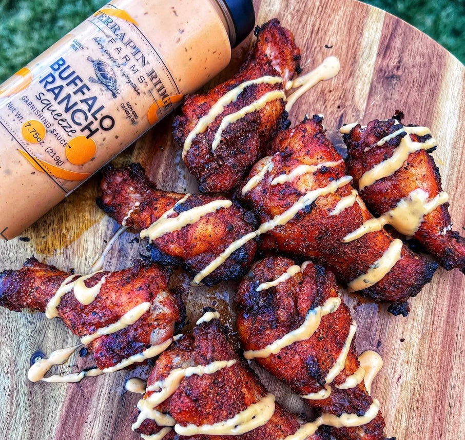 Terrapin Ridge Farms Buffalo Ranch is a rich and spicy condiment. Enjoy a spicy ranch dressing with seasonal vegetables and croutons. Try this condiment as a dipping sauce for fries, chicken wings, and other appetizers. Bring this ranch to your next summer picnic or BBQ. Or spread it on a chicken sandwich with arugula and sun-dried tomatoes.