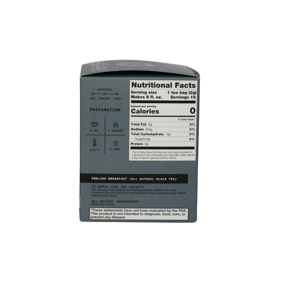 English Breakfast Tea Box (15 wrapped pyramid tea bags)