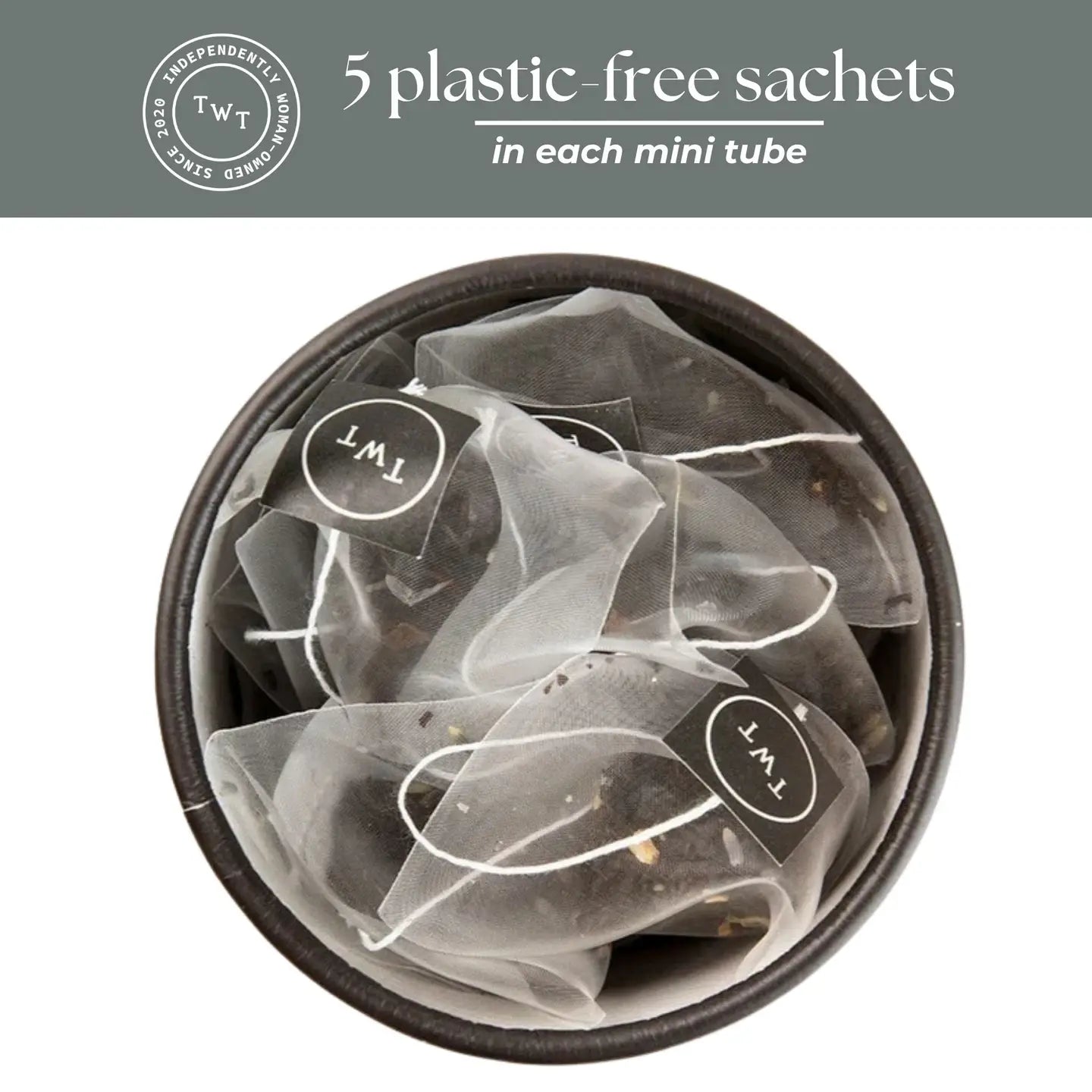 The perfect small gift for any occasion under $10. Each mini tea tube is 2” wide and 3.5” tall and is made from 100% recyclable rigid paper tube material. Inside are 5 pyramid tea bags that are made from premium, plastic-free, biodegradable material. Each tea bag holds approximately 2-2.5 grams of whole-leaf tea and herbs.