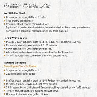 Despite the name, this mix contains no peanuts—you add your favorite peanut butter at home to give it that rich, creamy depth we all love in Thai cuisine. Stir in cooked chicken or tofu for a hearty meal, or serve it as a unique appetizer that’s ready in just 30 minutes.