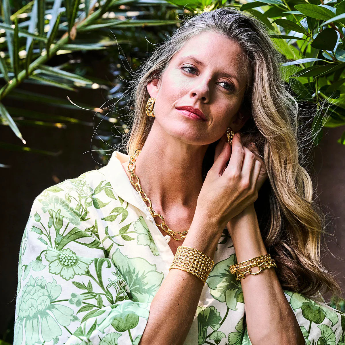 Just as traditional bamboo cane furniture has added warmth and timeless style to interiors for centuries, this golden bangle is the epitome of chic. Equally unique, classic and exquisitely detailed, it’s the perfect embellishment to elevate any ensemble, whether you’re having tea in the garden or cocktails on the veranda. Perfectly lovely on its own or in a stack.