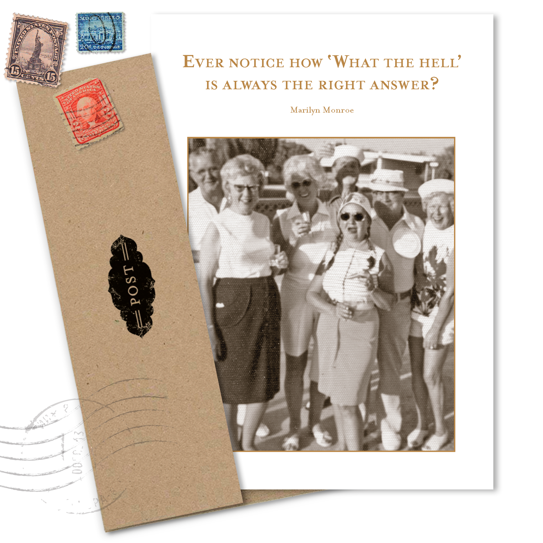Inside: There's no question, it's time to celebrate! Happy birthday Vintage photos in rich copper and sepia tones remind us of stories of friendships, celebrations, and adventures. Shannon’s award-winning collection delivers heart, humor, and a touch of sass. Each card is printed on FSC-certified, 100% recycled paper, and paired with Shannon's signature Kraft envelope made from 100% post-consumer paper. Made in the USA. Size: 4.5" x 6.25"